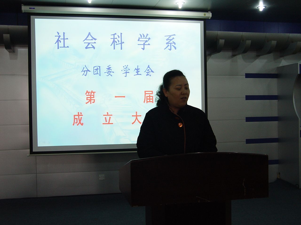 最后,社会科学系主任、直属党支部书记赵丽教授上台讲话,对分团委和学生会的成员寄予希望,希望他们可以承载全体社会科学系师生的愿望,打造新的分团委、学生会品牌,为振兴社会科学系而努力!